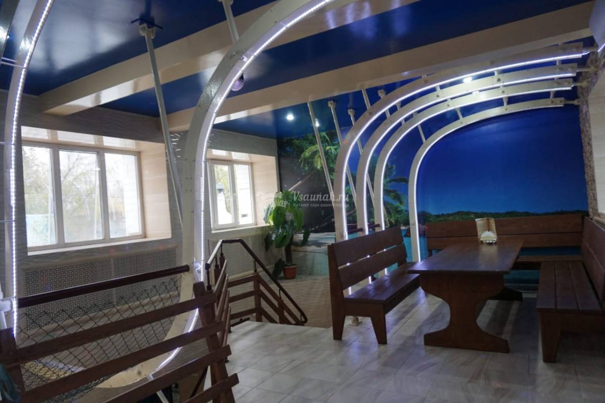 В нашей сауне вы сможете покурить кальян и отдохнуть в комнате отдыха. Большим компаниям подойдет караоке. Сауна рассчитана на 15 человек. Посетите нашу сауну, ведь это отличное место, чтобы спокойно расслабиться и пообщаться с друзьями за чашкой ароматного и полезного чая. Для любителей контрастов, после парилки можно остудится в бассейне с холодной водой или обрушить на себя воду из ведра.